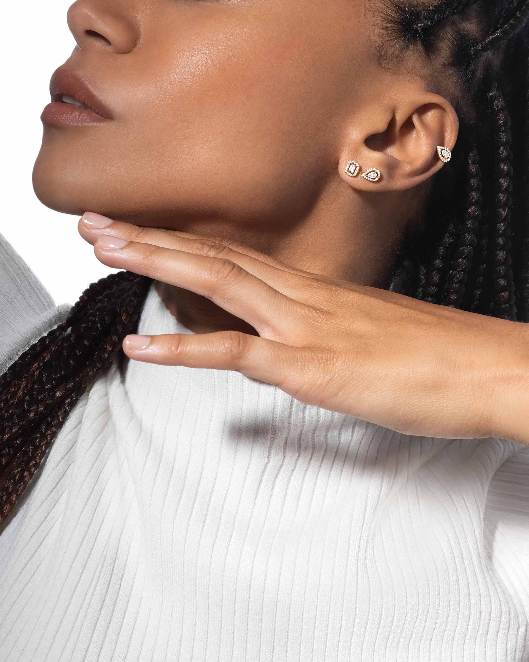Scintillating and vibrant, Messika diamond earrings follow your every move. Infinite movement is at the core of the Maison’s inspiration:  “There has always been a clear link in my creative process between movement, jewelry and style. Earrings must exist in perfect dialogue with their wearer”, Valérie Messika explains.
