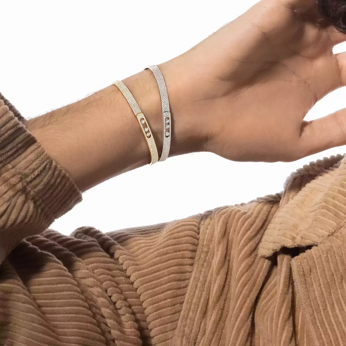 体验 Messika 个性化礼盒带来的独特感受。每件在线订购的作品都精心呈现在闪耀的首饰盒中,外包优雅的外盒,并附有 Maison 标志性色彩的手提袋。为了更贴心的细节,您可以在订单中添加个性化留言。