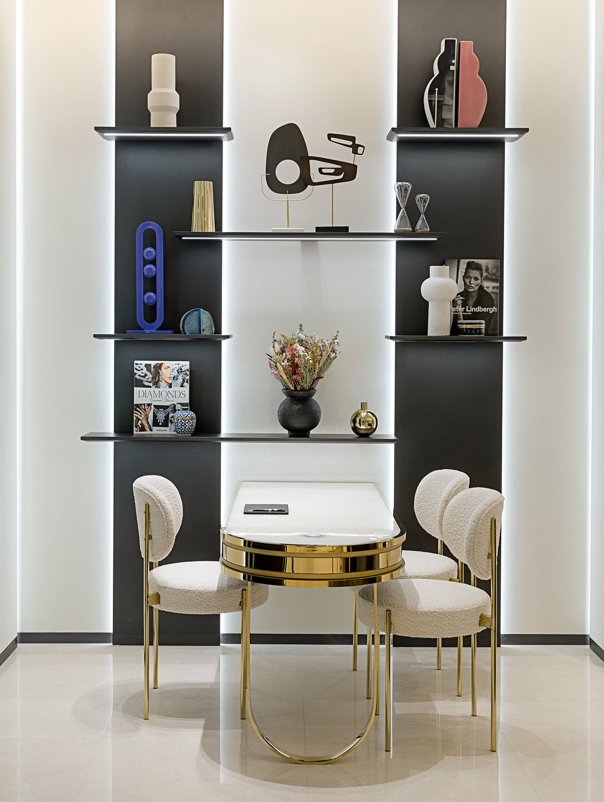 这家精品店位于Centria购物中心一层,延续品牌标志性精致奢华美学,致力于热爱珠宝的顾客带来独特的购物体验。精品店室内装潢运用更加清新明快的色调,并点缀雍容华贵的金色细节、精心雕琢的大理石,彰显考究的石材工艺。