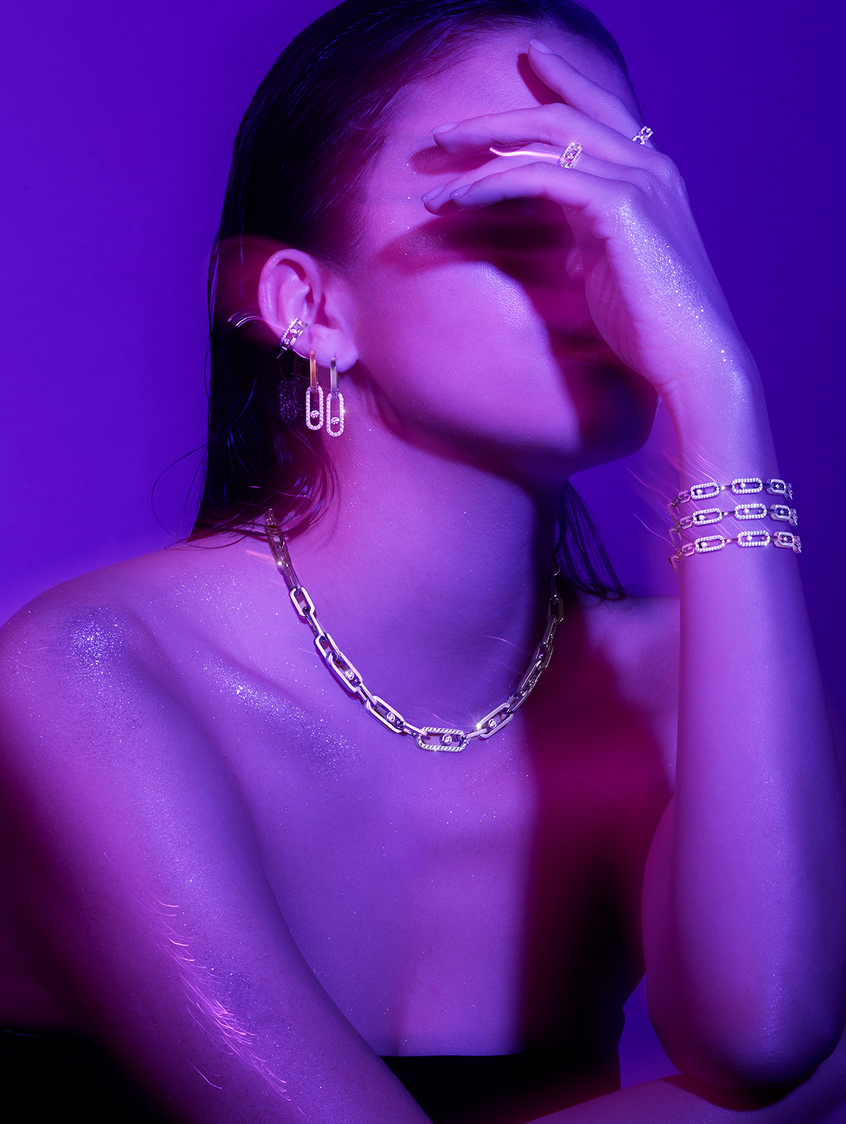 没有什么比项链更能突出造型风格特色。金质钻石项链是为考究正装或简约造型增添绰约风姿的点睛之笔,亦是引领潮流的女士经典珠宝作品。它是放在圣诞树下,馈赠时尚达人的理想奢华珍礼,而摇滚风格设计,则更适于搭配经典牛仔裤或日常T恤。选择一件承载深刻意涵的臻品,作为奢华心礼,与她一生相伴,如影随形。全新So Move和Move Link珠宝系列项链风格大胆张扬,流露现代气息,一定会令她一见倾心。调节合扣可轻松调整项链长度,令每个人皆可拥有适于自己风格的佩戴垂坠感。只需您根据喜好选择心仪的金质色彩。