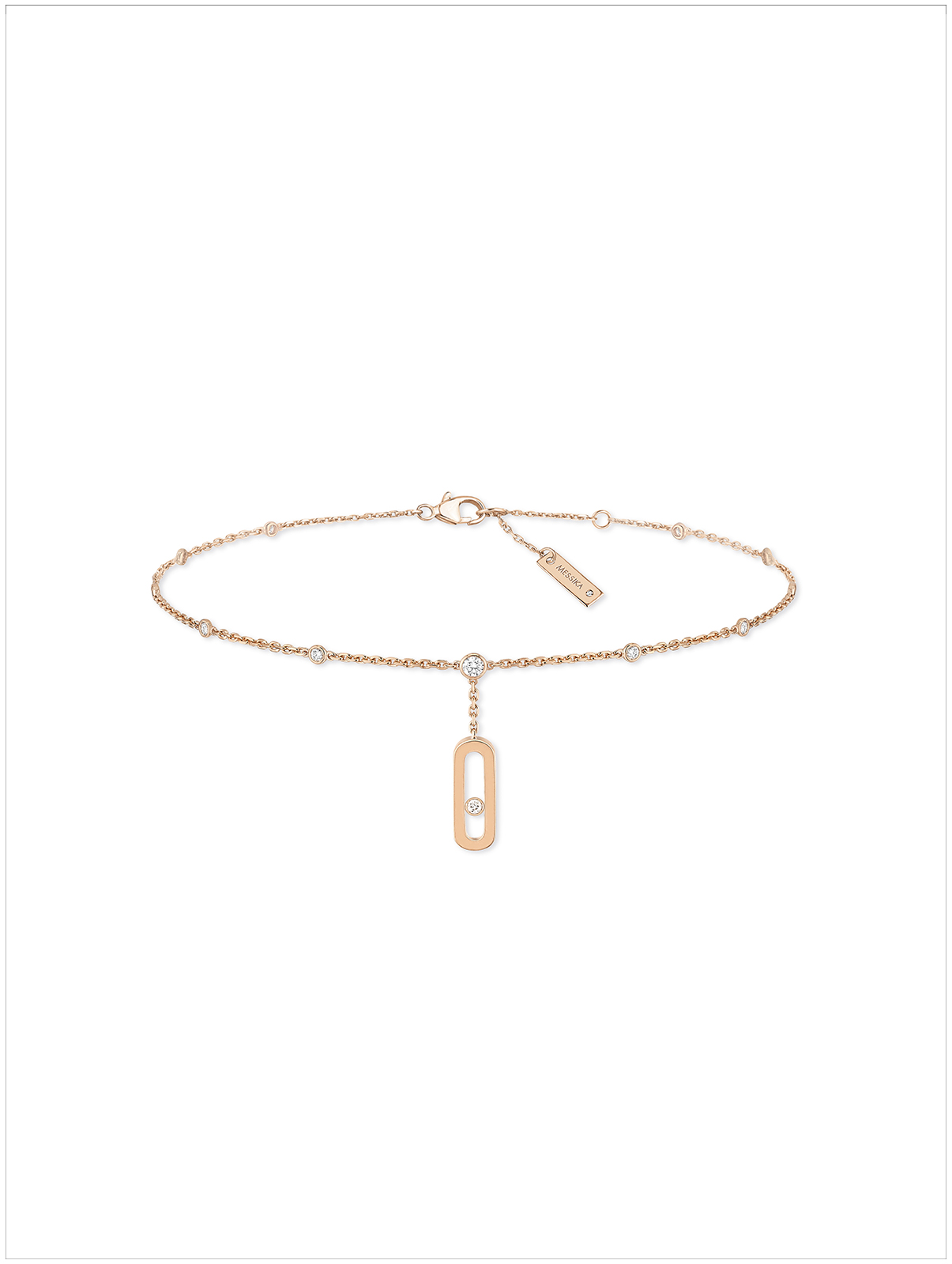大胆尝试Move Uno玫瑰金钻石脚踝链,它犹如第二层肌肤般贴合:时尚简约的必备单品,从头到脚彰显优雅魅力!Move Uno流苏造型,时而以全金质打造,时而铺镶璀璨钻石,缱绻环绕脚踝,彰显珍贵的自由气息。引领风潮且易于佩戴,即将成为您不可或缺的珠宝之一。细节之处方见优雅。