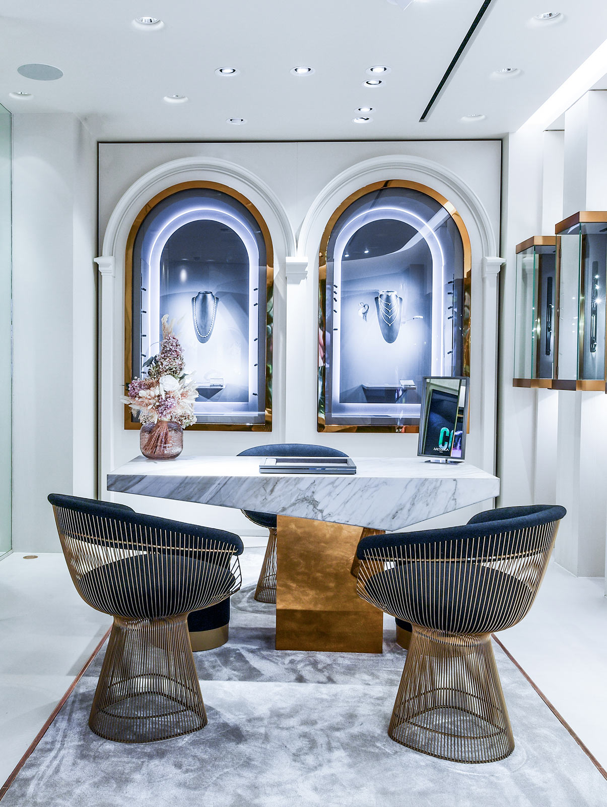 从灰色基调到粉红香槟色金属细节,从大理石装饰到电子显示屏,立即引领来宾沉浸于Messika梅西卡隽永且跨世代的世界之中。旗舰店内部设有私人休息区,邀请顾客重新探索品牌标志性珠宝系列。