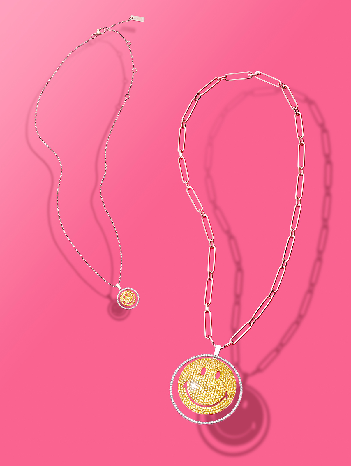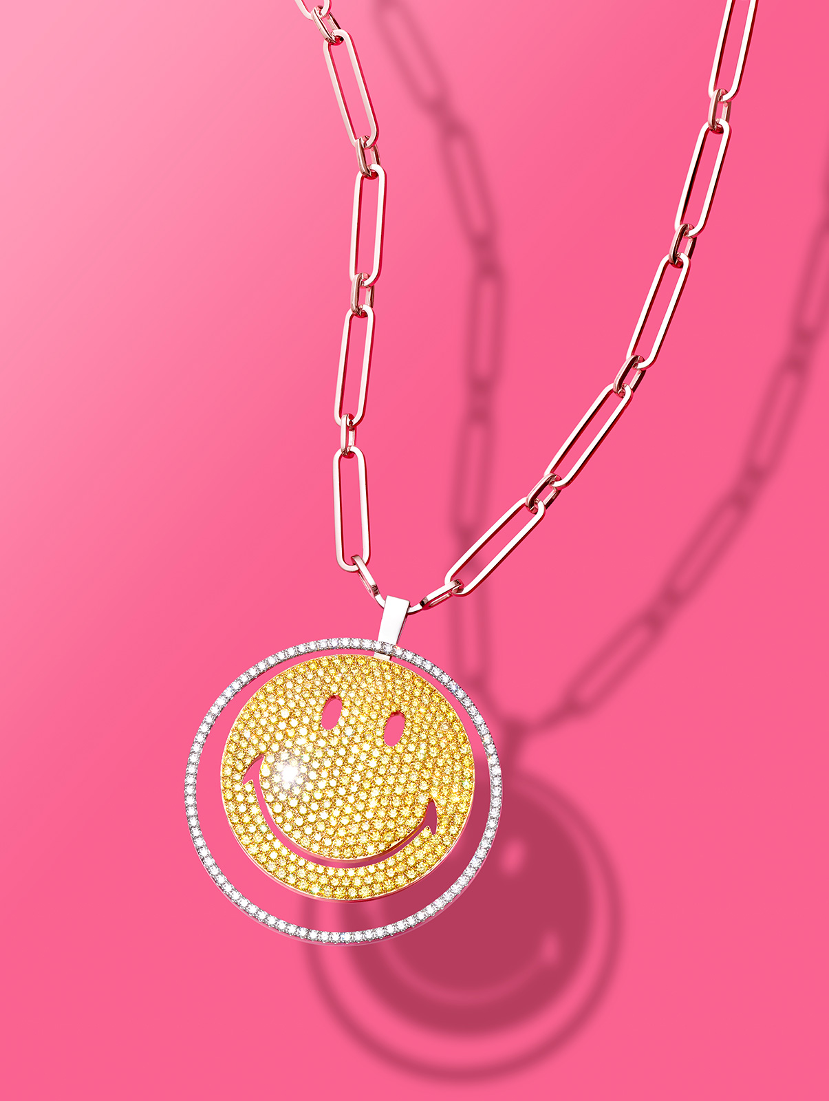 “我和许多人一样,对这个图案有着深切的情谊。它是流行文化的重要象征,承载着众多价值原则,比如乐观精神、笑对人生和抽离事外的理性审思。我非常荣幸能在The Smiley Company邀请的五十家品牌之列。这次合作非常有趣,淋漓彰显了珠宝工艺。我确信该项目会获得公众的青睐,因为我们每个人都渴望拥有积极乐观的态度!”