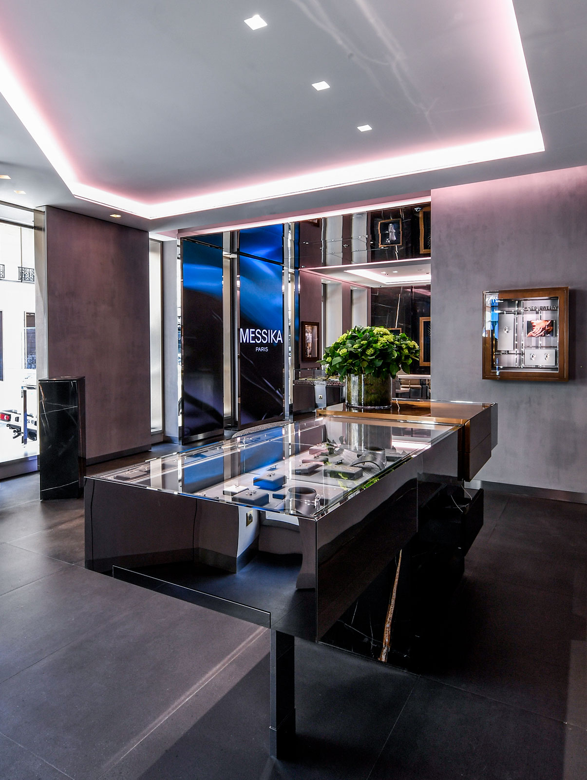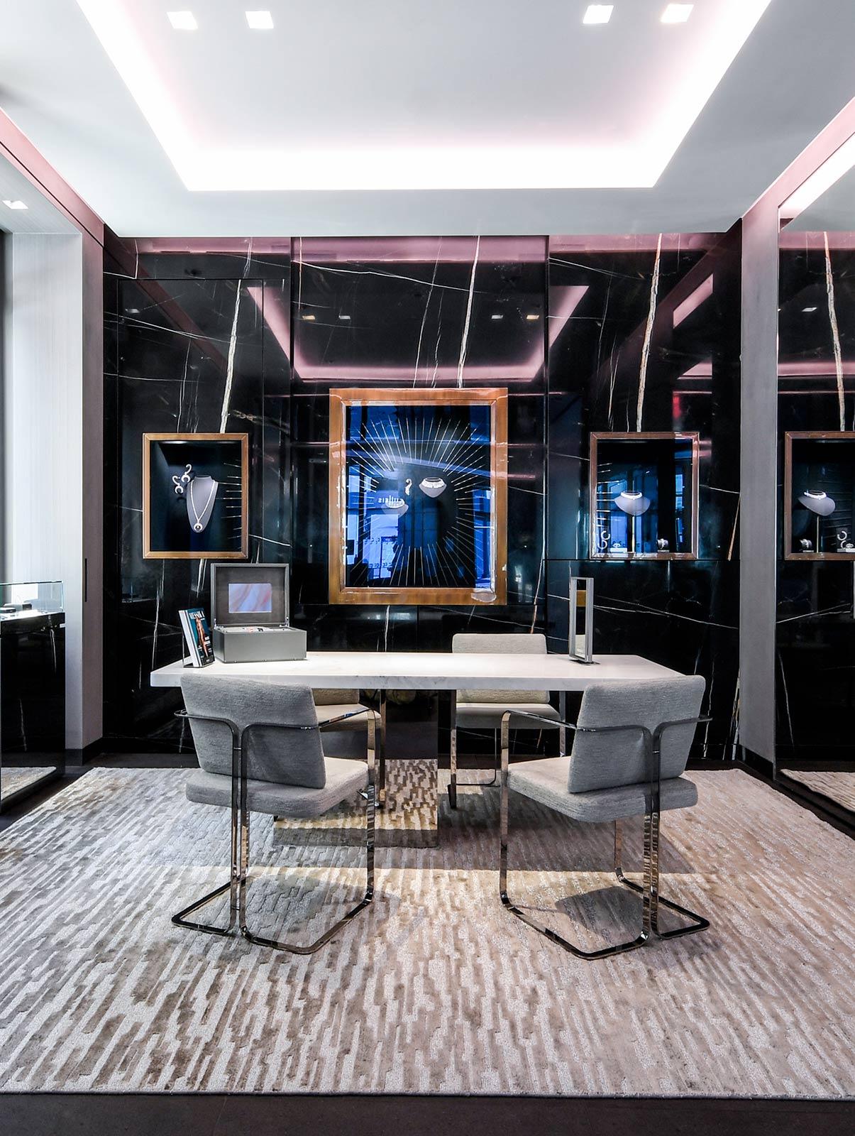从踏入专卖店的那一刻起,顾客即沉浸于由名贵材料打造的简约环境之中,所到之处无不承载着两家品牌的共同价值观。从对称的设计到透明的橱窗,再到大理石地板和黑白配色细节,两家品牌诚邀您在梦幻唯美的环境中探索Messika梅西卡钻石珠宝的美感。