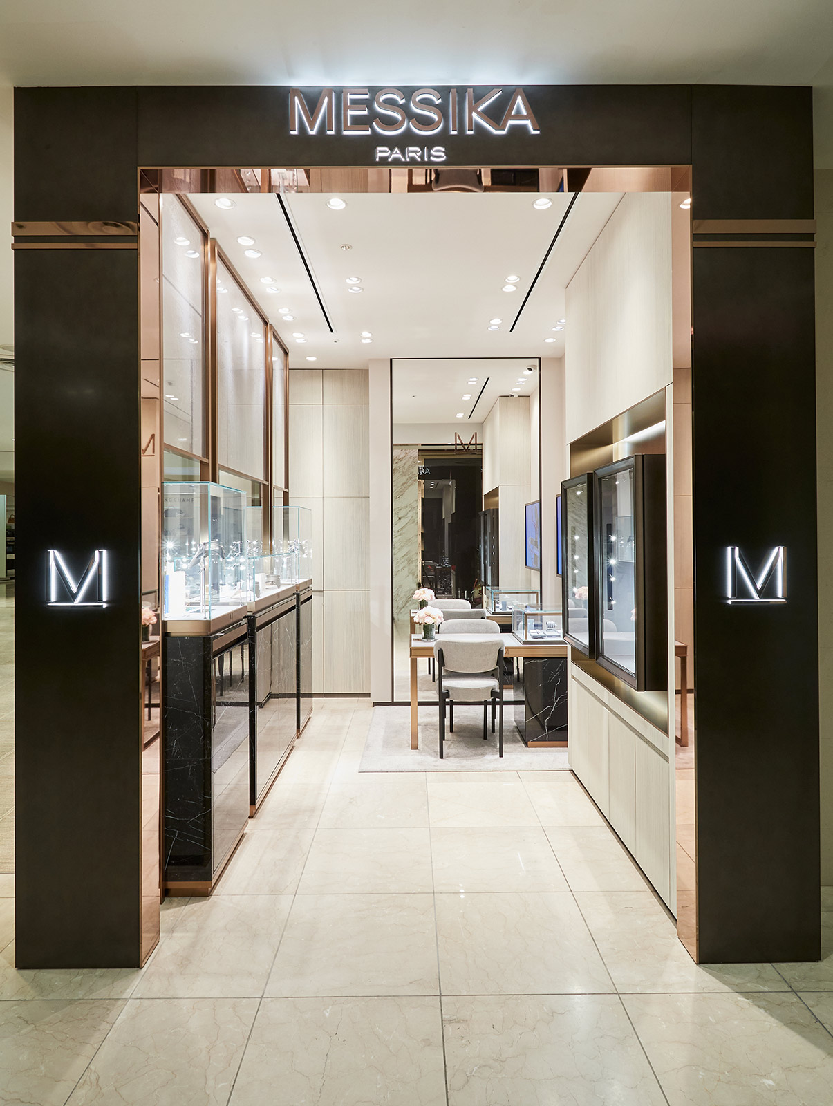 这家全新专卖店由Valérie Messika亲自设计,通过简约线条将奢华、现代与创意和谐相融,尽显品牌价值与美学风格。从灰色到玫瑰金,从大理石到斜面镜,各种颜色和材质的独特组合令人不由沉浸在Messika梅西卡的珠宝世界中。