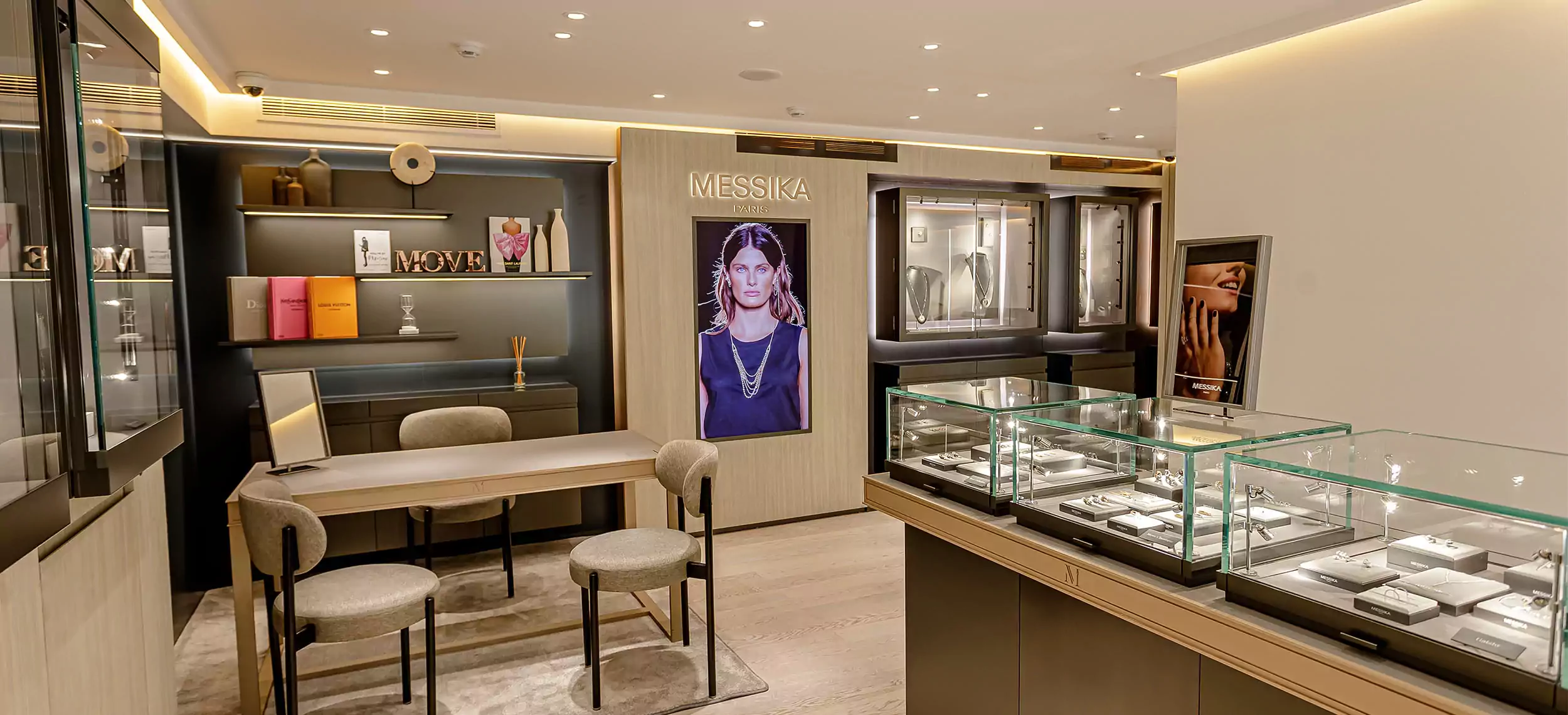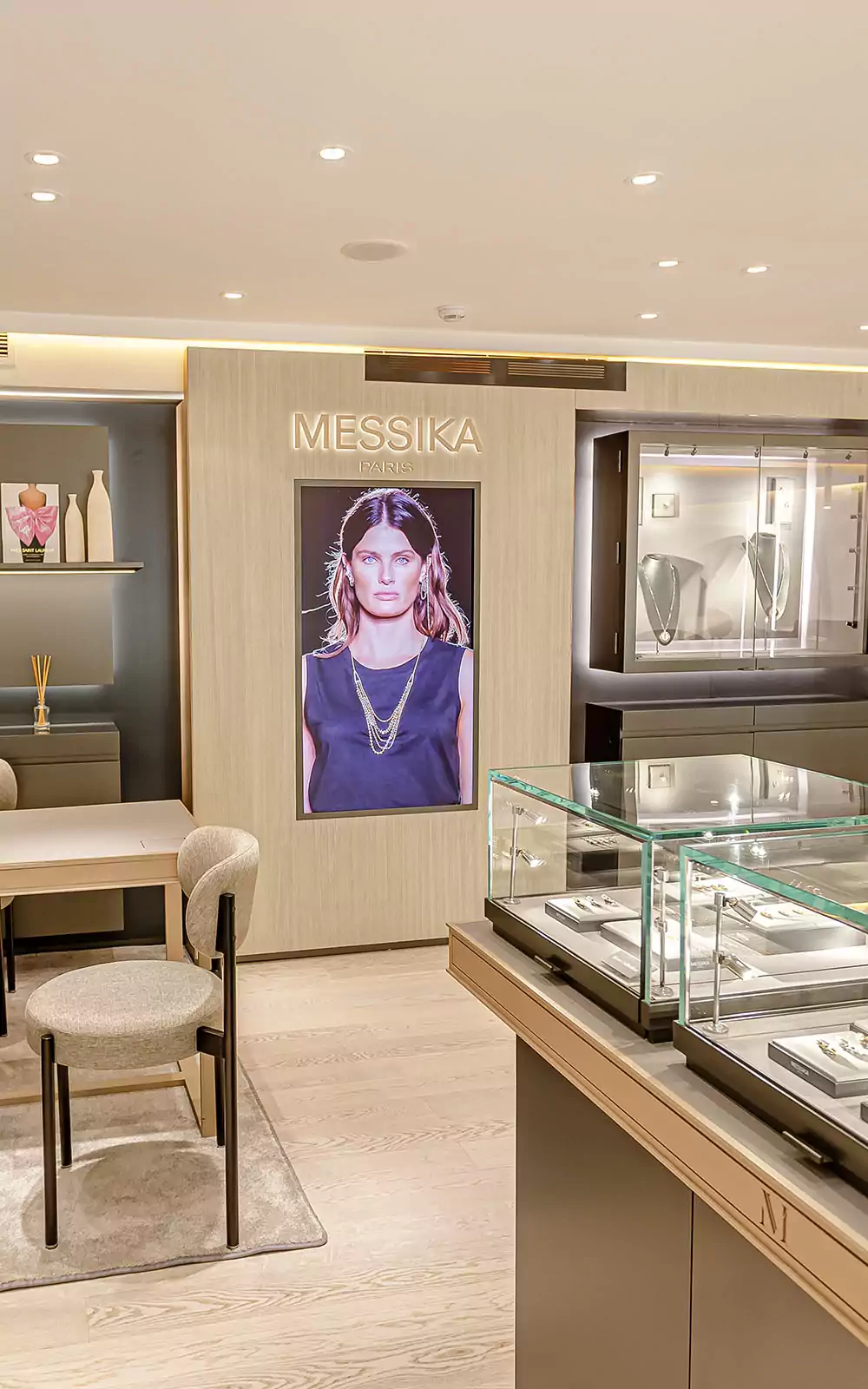 Valérie Messika发挥创意巧思,构思出梦幻耀眼的室内装潢,华美映衬由她设计的钻石珠宝系列。顾客还将能够在此探索品牌巴黎工坊打造的独特高级珠宝臻品。