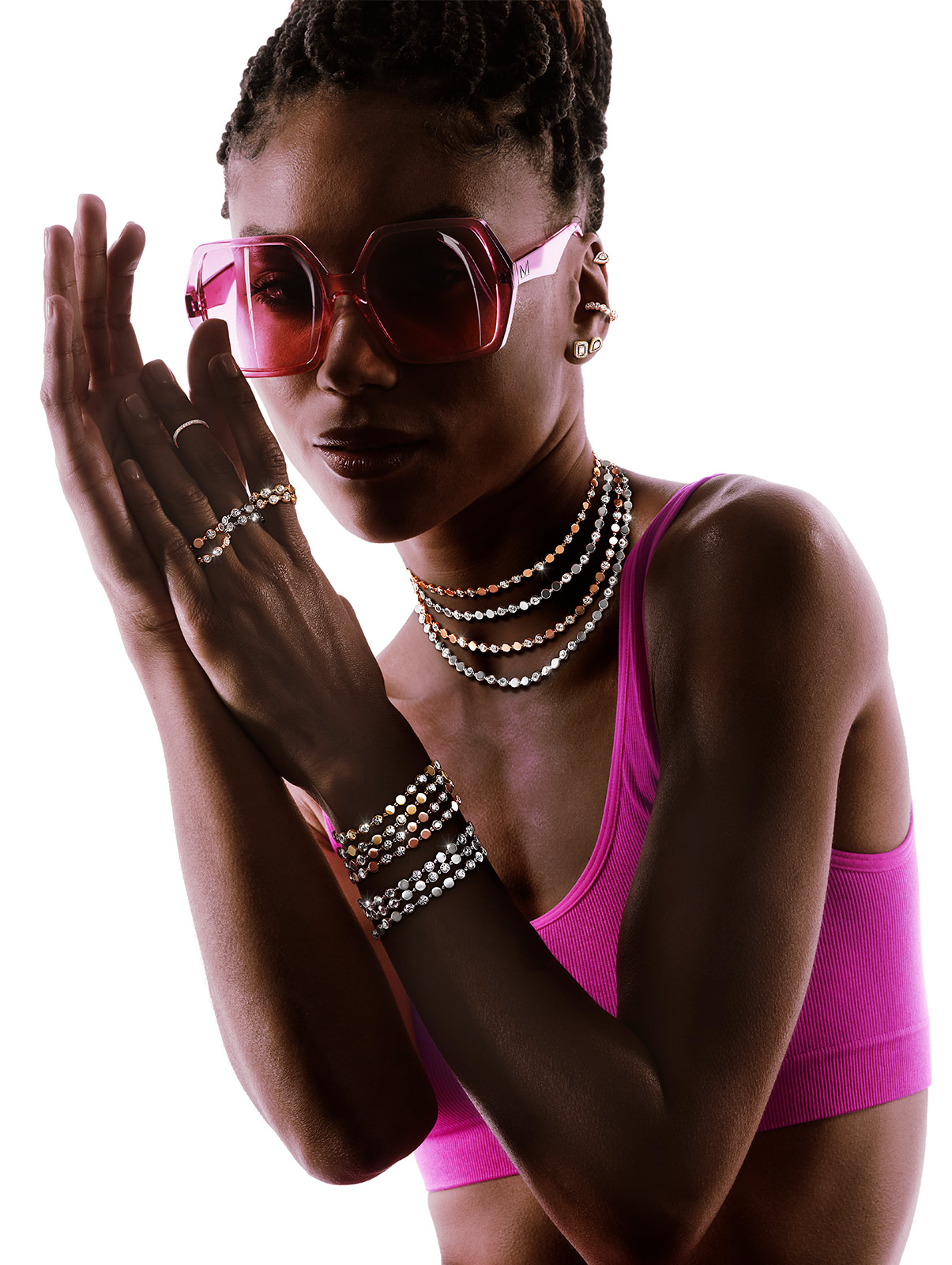 Valérie Messika亦以一款承载象征意义的珠宝作品致献美好夏日。选择一款钻石珠宝,绝非无心之举!例如,选择Move Link新品,是因为希望通过配饰,彰显个性。希望能够肯定自我,对自己负责,展现个人风格……选择Lucky Move与Lucky Color系列,亦是出于相同目的!这些女士钻石珠宝,是体现保障与护佑的幸运护身符,每一颗装饰宝石,皆体现独树一帜的个性特色。哪一款色彩与您更相配?今夏,钻石珠宝难得可贵地承载深厚意韵!