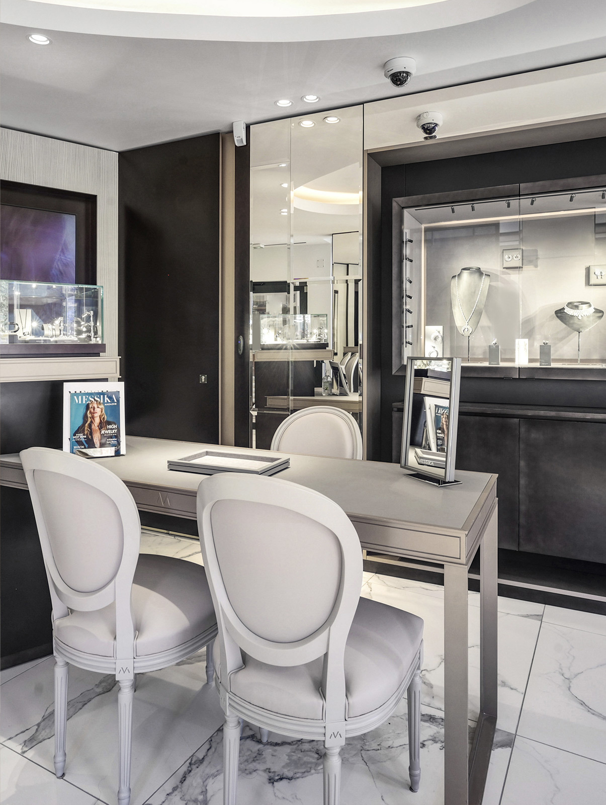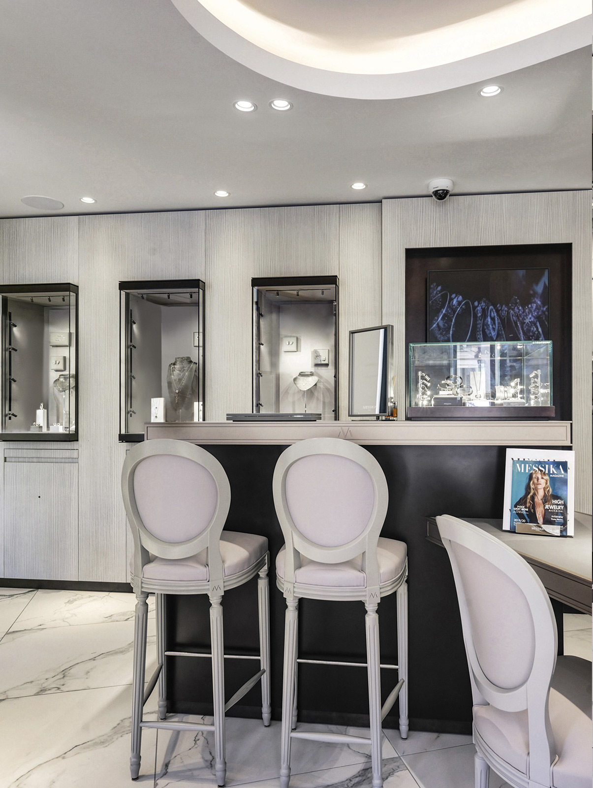 专卖店的每一个细节均由Valérie Messika构思设计,旨在为其系列作品营造一个梦幻唯美的环境。所有标志性的钻石珠宝将被陈列于此:经典隽永的Move系列以及Glam-Azone、My Twin或Lucy Move等系列珠宝。顾客亦可从品牌的高级珠宝工作室打造的Born To Be Wild珠宝系列中探索独特的高级珠宝系列。