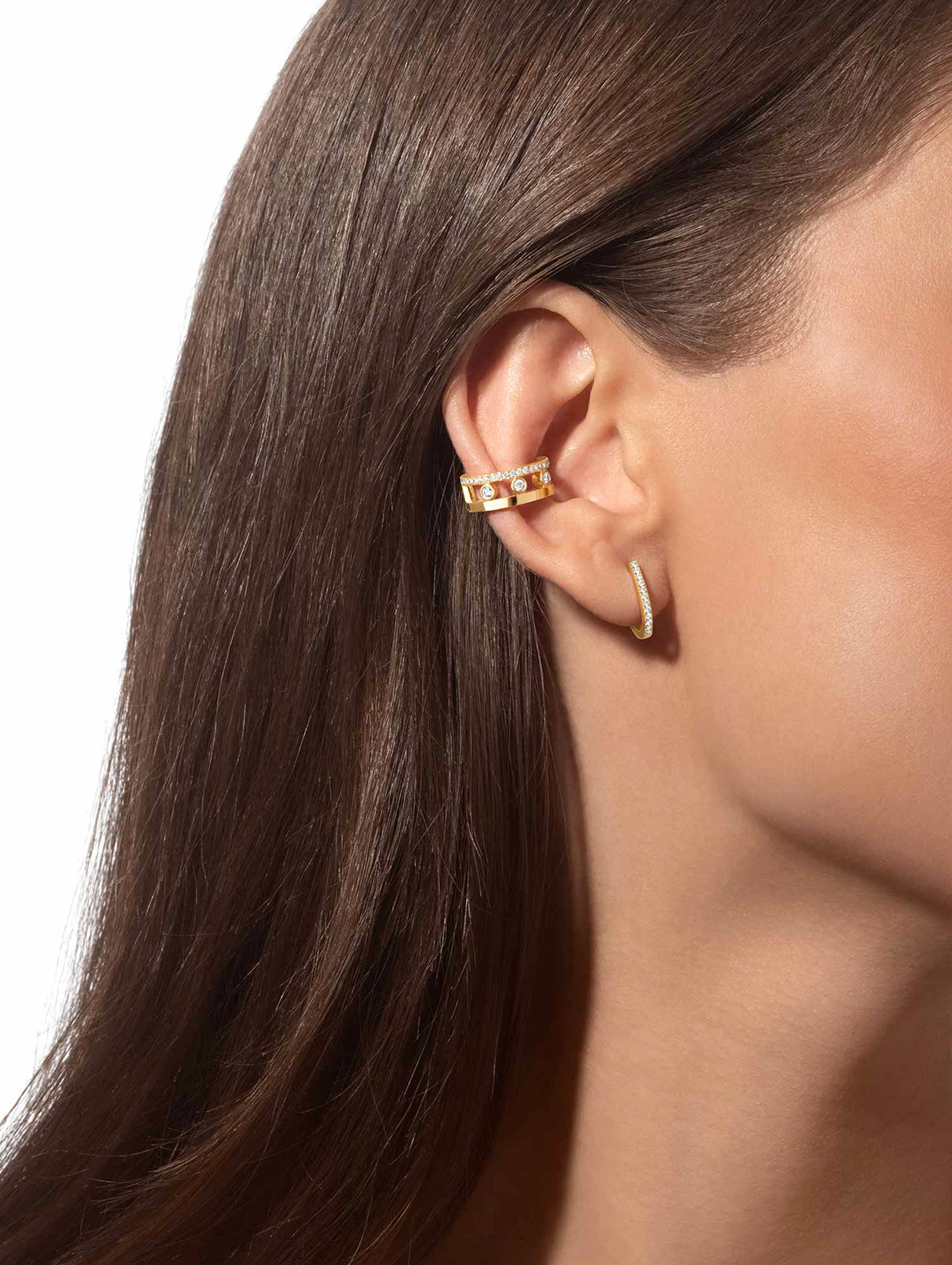 大胆展现金质与钻石之美一直是Messika梅西卡品牌精髓的一部分。品牌的钻石耳夹正是这一理念的体现,可为您的耳畔增添独特而时尚的美感。My Twin单边金质钻石耳夹令人难以抗拒,其镶嵌的梨形钻石熠熠发光,可与Messika梅西卡品牌的所有奢华珠宝和谐搭配。Move Romane钻石耳夹则是您的时尚宣言, 这是一款镶嵌钻石的奢华手工珠宝,佩戴于耳轮处,可打造精致而典雅的造型。