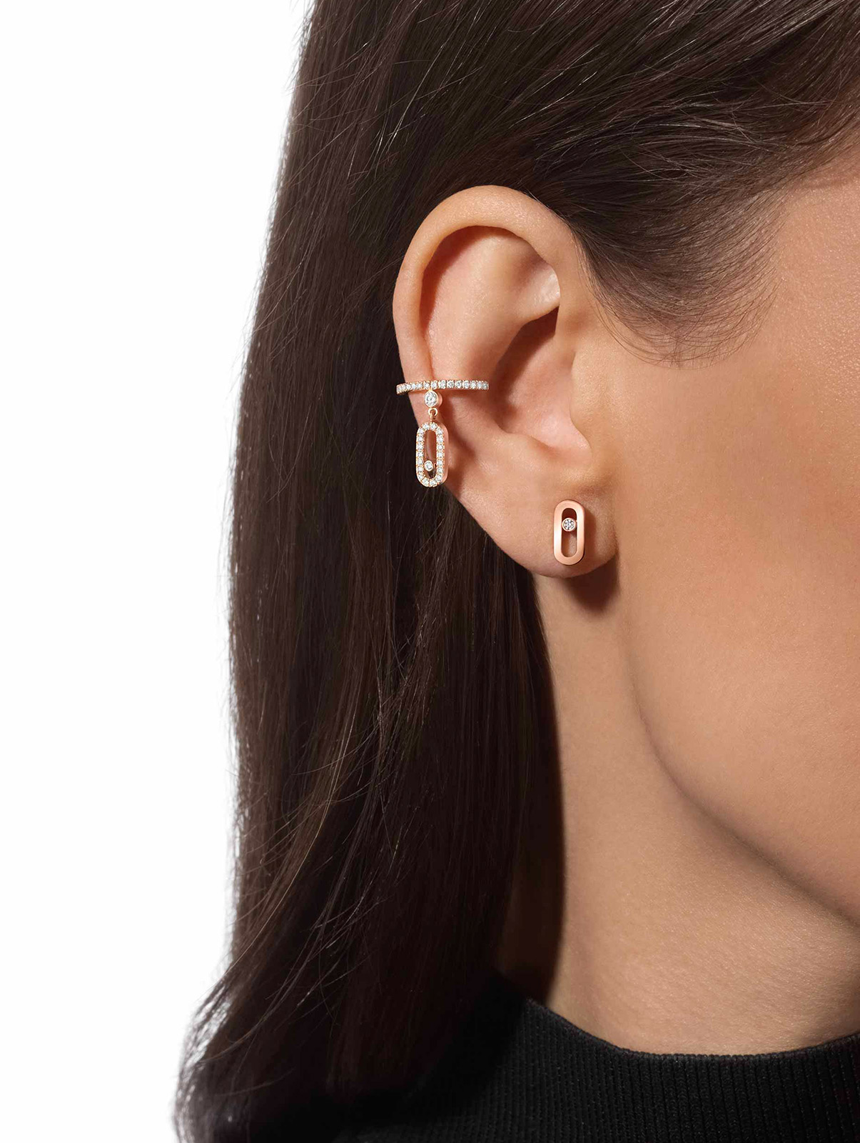 选择单边钻石耳夹, 展现您个性中的摇滚精神。让金质与钻石的璀璨光芒闪耀您的耳畔,将Messika梅西卡单边钻石耳夹与品牌其他耳饰混搭,追随多件配饰的叠戴潮流。亦可不对称地佩戴Move Uno Pampille Pavé单边耳夹,这款光芒四溢的金质钻石耳饰镶嵌璀璨夺目的宝石。