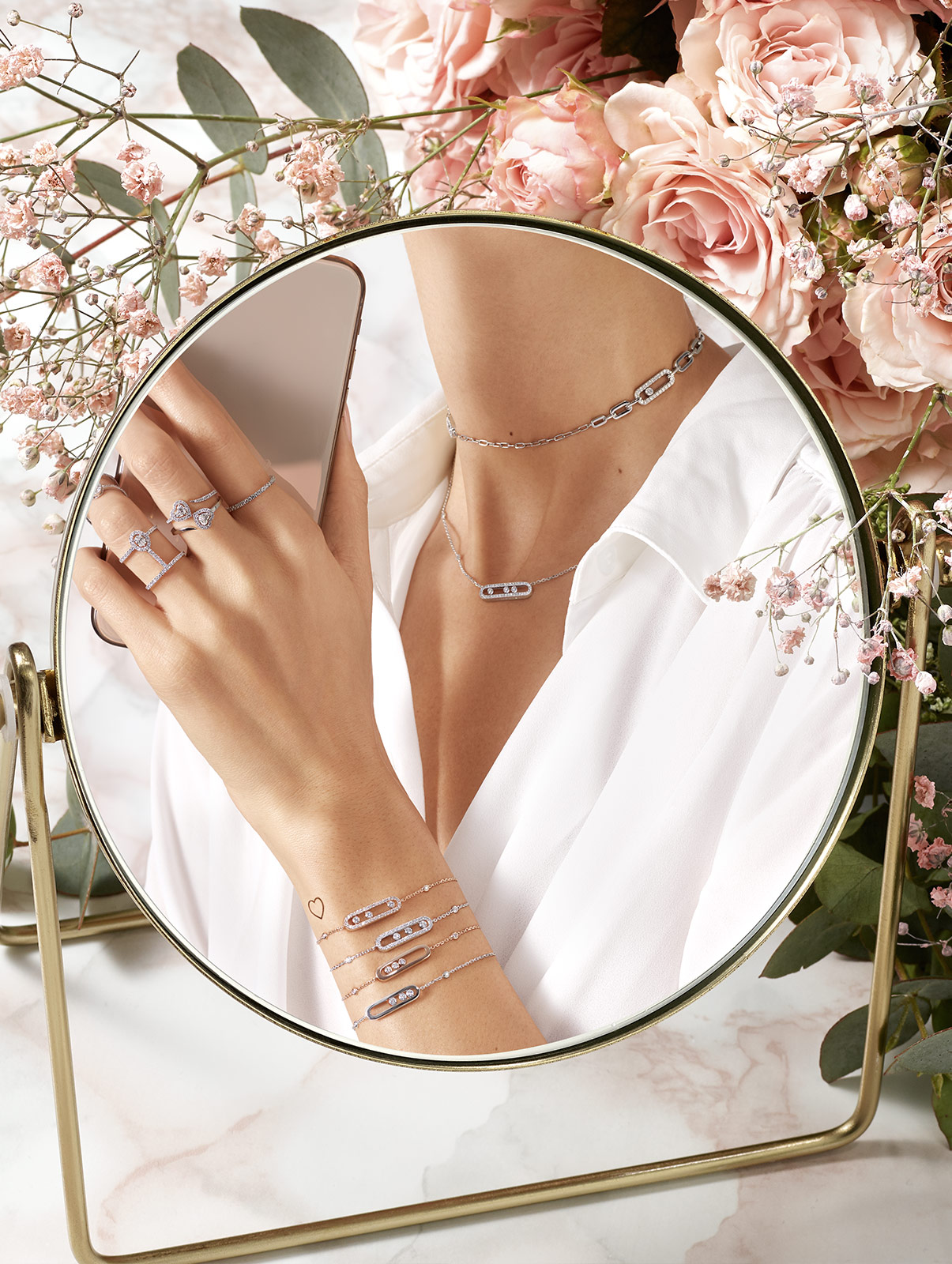 Valérie Messika一直致力于设计颂扬动人爱情的钻石珠宝,以陪伴女性生命中的每一个瞬间。充满符号元素和蕴含浓情蜜意的时尚珠宝单品。