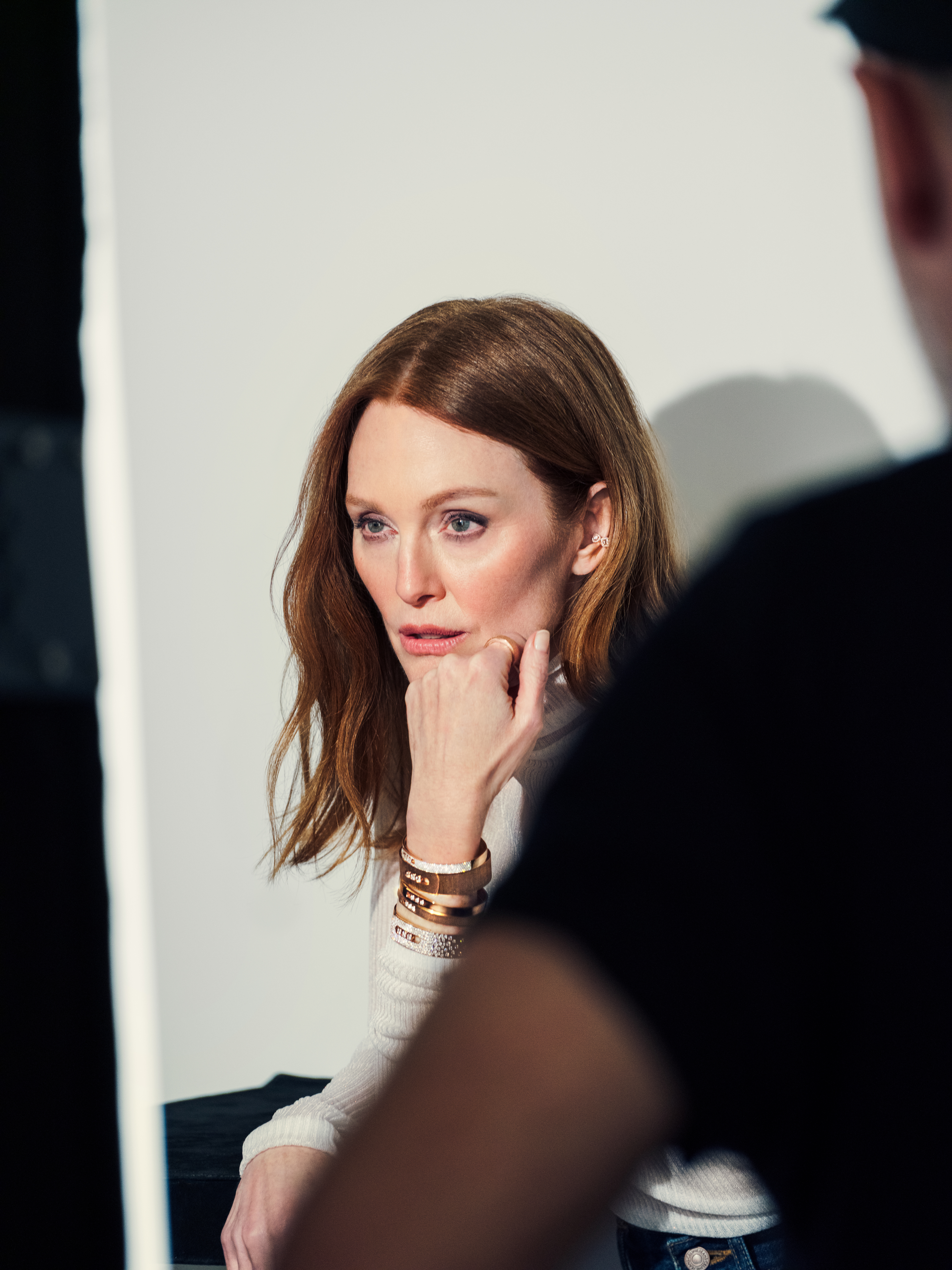 Julianne Moore approaches Move with the intimacy of a woman, the devotion of a mother, and the soul of an artist. Academy Award-winning, celebrated for portraying women of extraordinary dimension, she gives the campaign its gravitational center, like the diamonds themselves, held in place yet never still. But it is the woman behind the roles who summons the emotion. Her bond with Valérie Messika is rooted in something universal: family. Named after Valérie's daughter, Move Noa sits on Julianne's wrist like a ribbon of gold, inseparable from the love that inspired its creation.