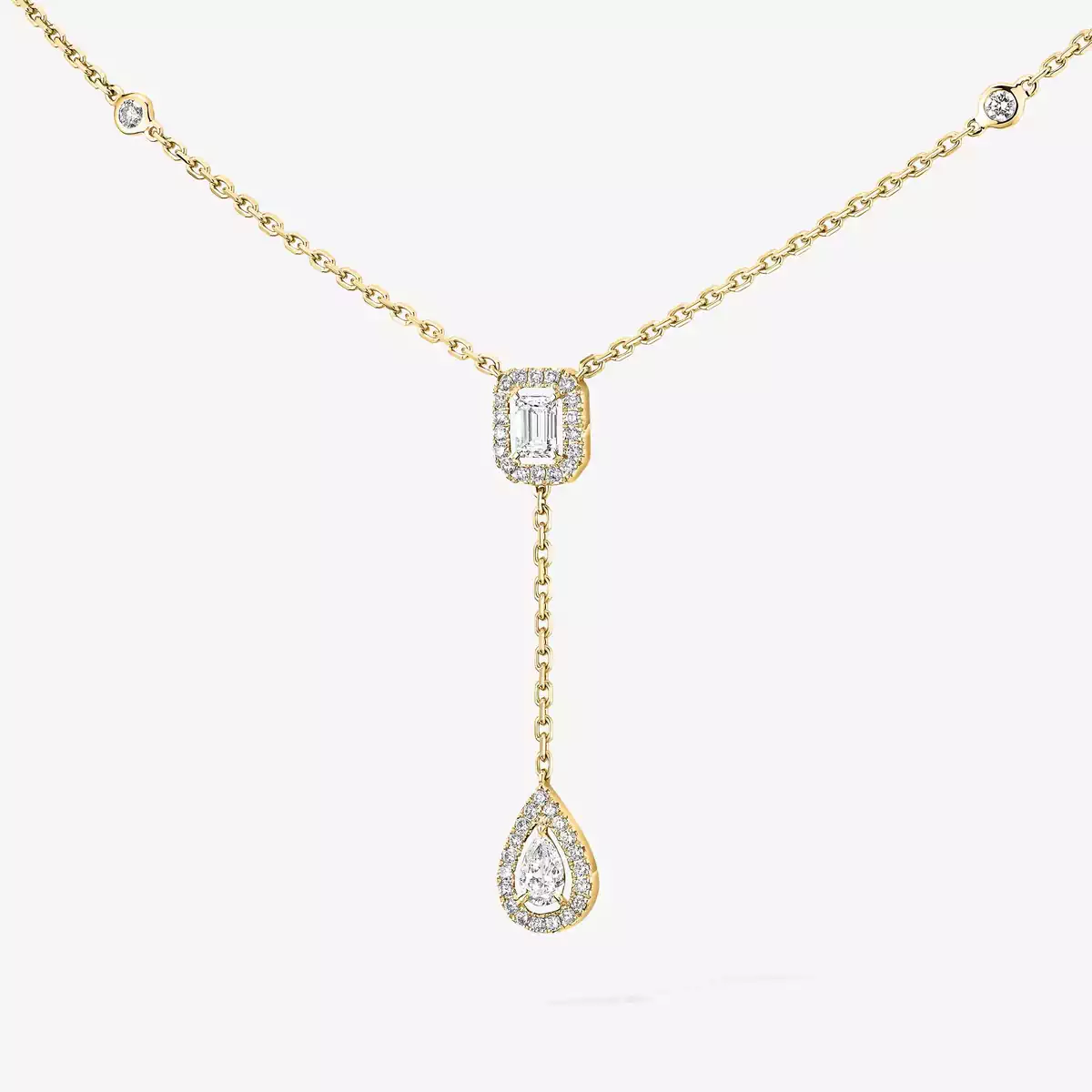 Viva una experiencia única con el estuche personalizado de Messika. Cada creación pedida en línea se presenta cuidadosamente en un estuche luminoso, protegido por una elegante sobrecaja y acompañado de una bolsa con los colores icónicos de la Maison. Para un detalle aún más especial, añada un mensaje personalizado a su pedido.