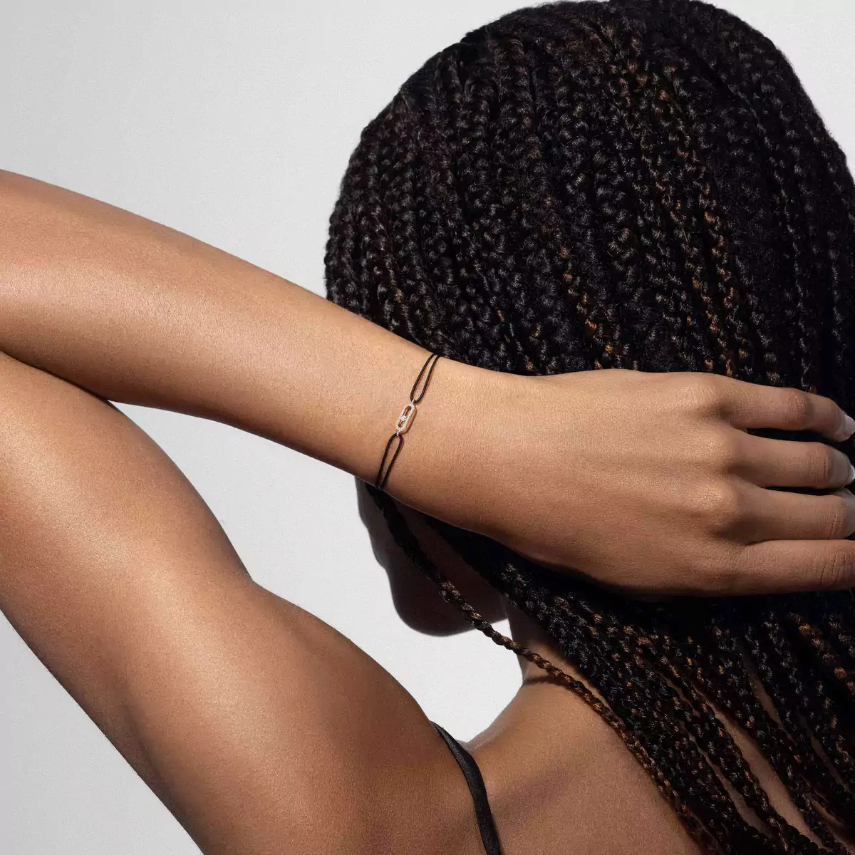 Pulsera de diamantes y cordón negro en oro blanco Move Uno | Messika 13209-WG