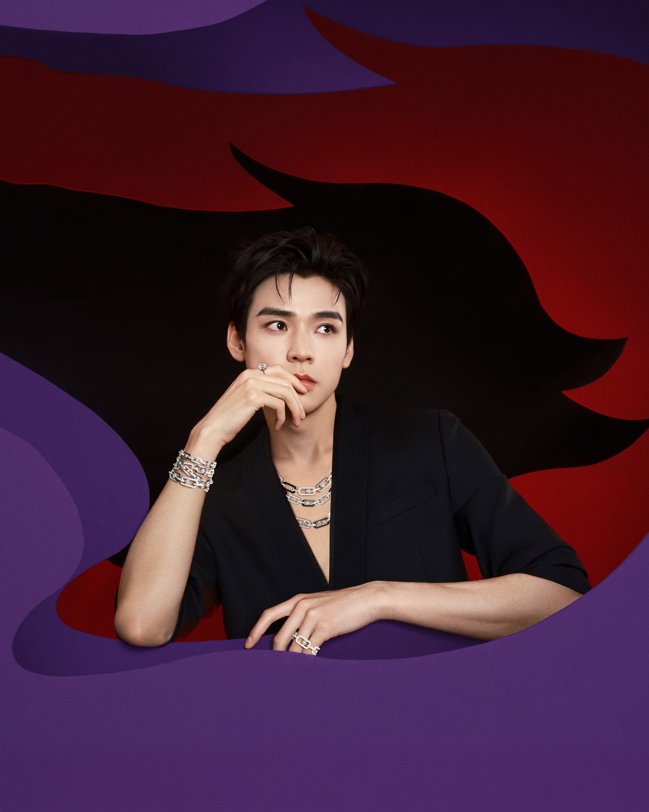 Relaxed and expressive, Messika’s APAC Brand Ambassador Simon Gong effortlessly reflects the Maison’s modern spirit. In the campaign, So Move collection takes center stage, its amplified proportions worn as a confident expression of individuality. Move Link , with its interlocking chain design, blurs traditional gender codes and evokes a sense of liberated elegance. Messika’s signature Move pieces keep the diamonds in motion, while a red cord bracelet offers a subtle nod to seasonal traditions and Eastern symbolism. Wherever the camera lingers, diamond light becomes a defining note of contemporary style.