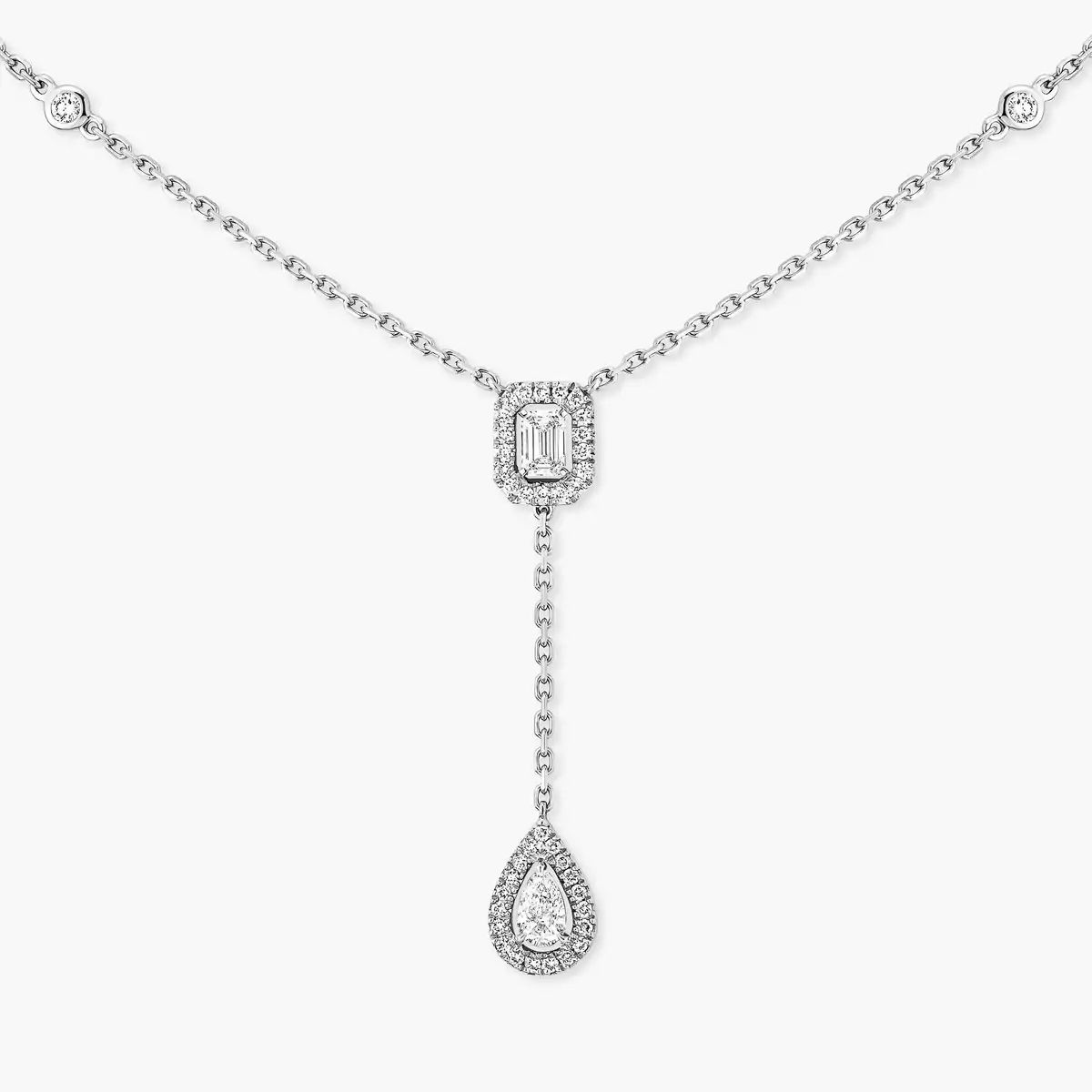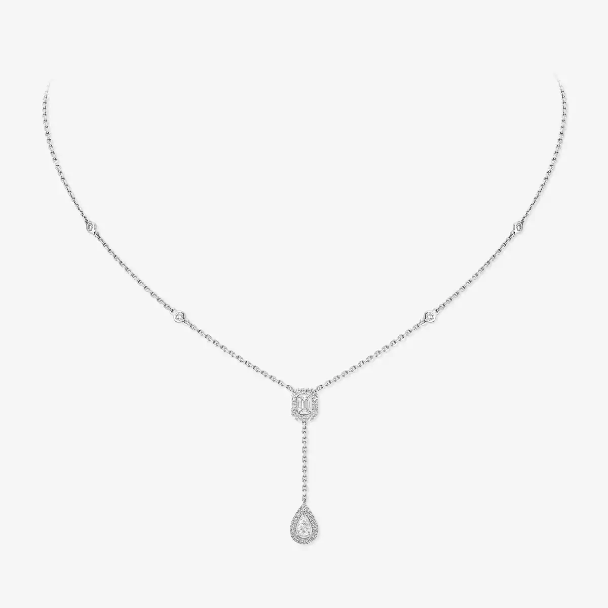 화이트 골드 마이 트윈 다이아몬드 타이 네크리스 0.10캐럿 | 메시카 06693-WG