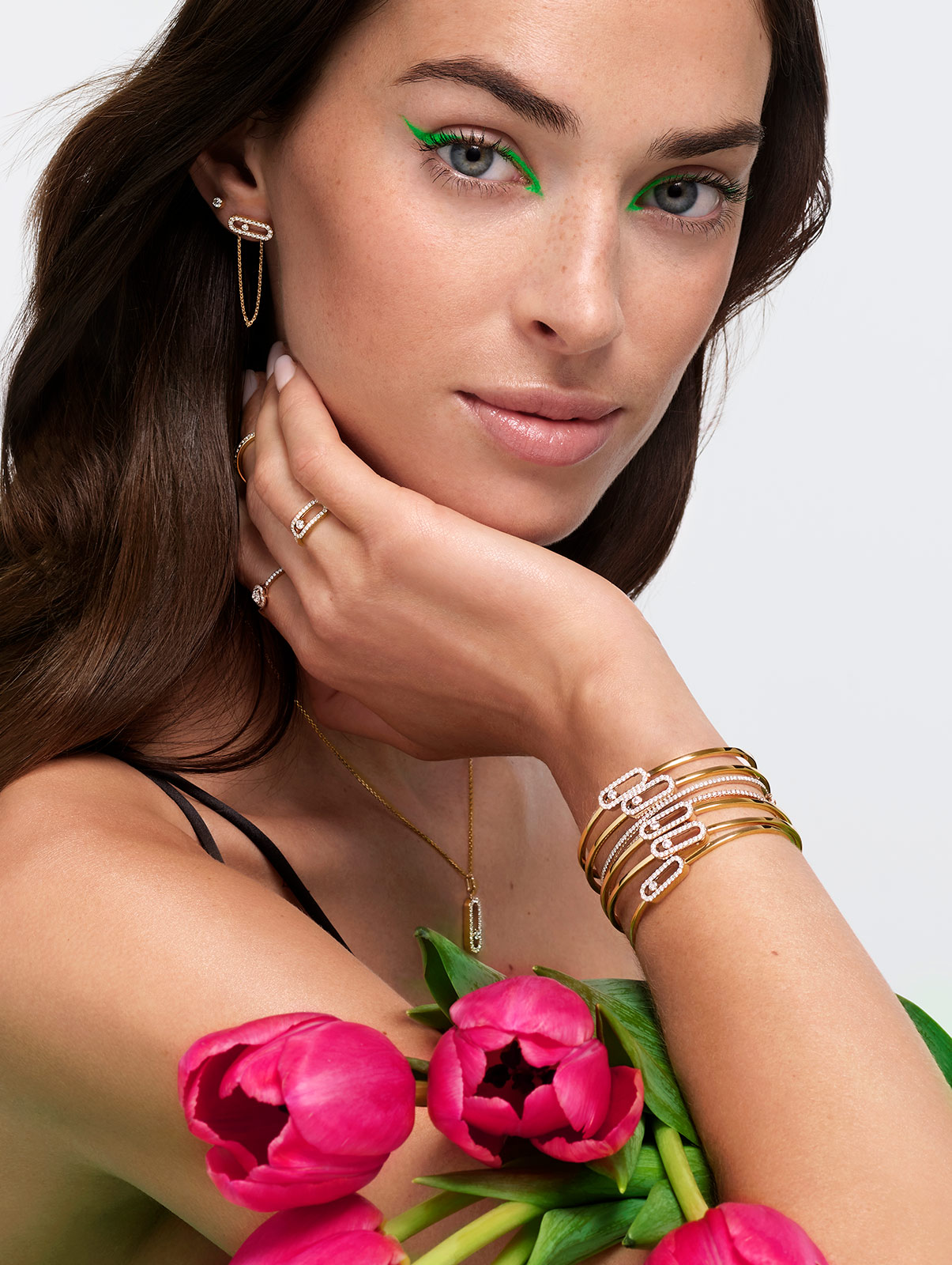 Не теряющая своей актуальности легендарная коллекция Move Uno вобрала в себя украшения, которые объединяют поколения. Благодаря своему элегантному и сдержанному дизайну роскошные ювелирные изделия Move Uno нравятся людям разных поколений. Их можно носить по любому поводу, а также отдельно, что подчеркнет их изящество, или в сочетании с другими бриллиантовыми украшениями Messika для создания эффекта многослойности.