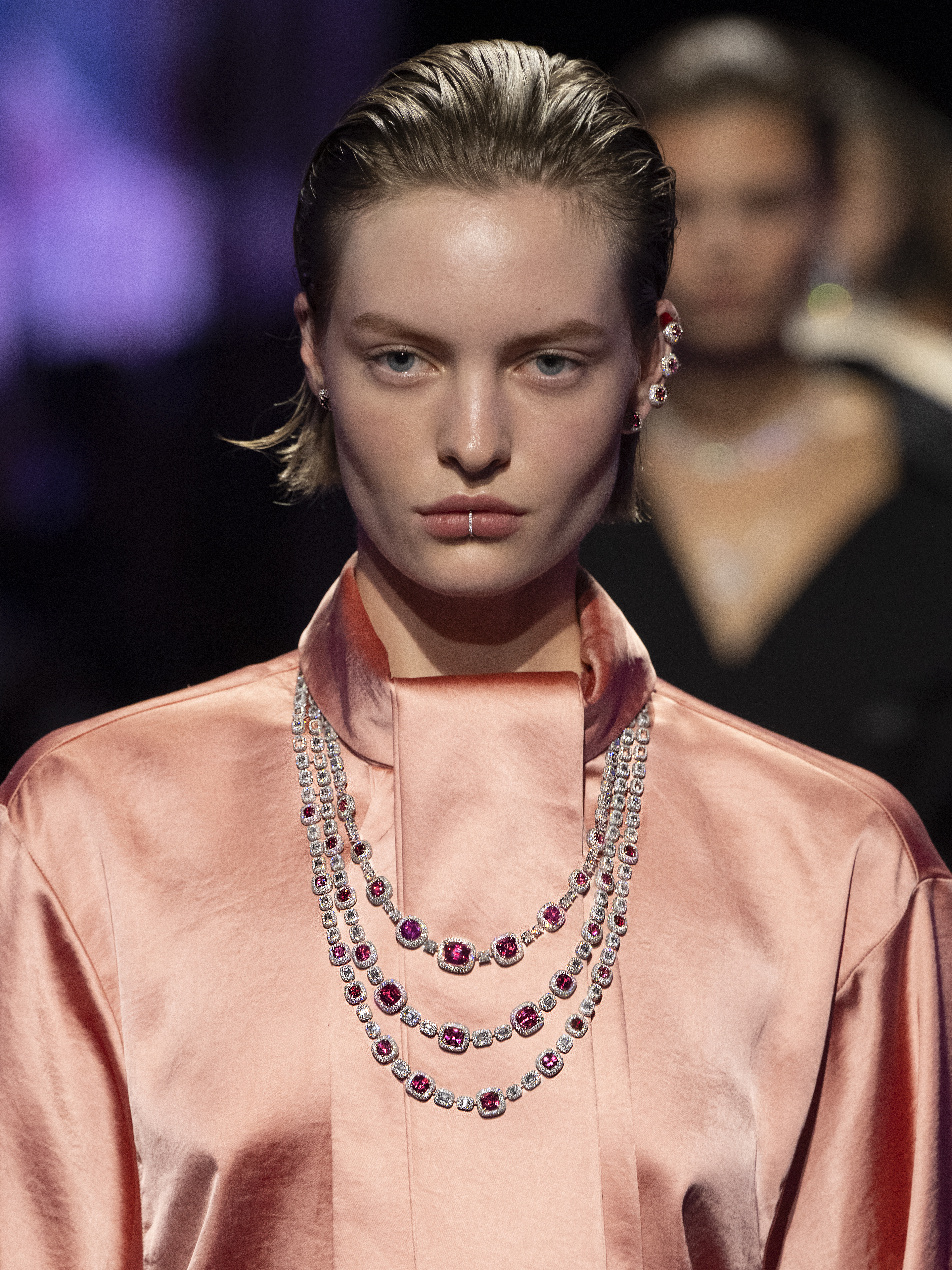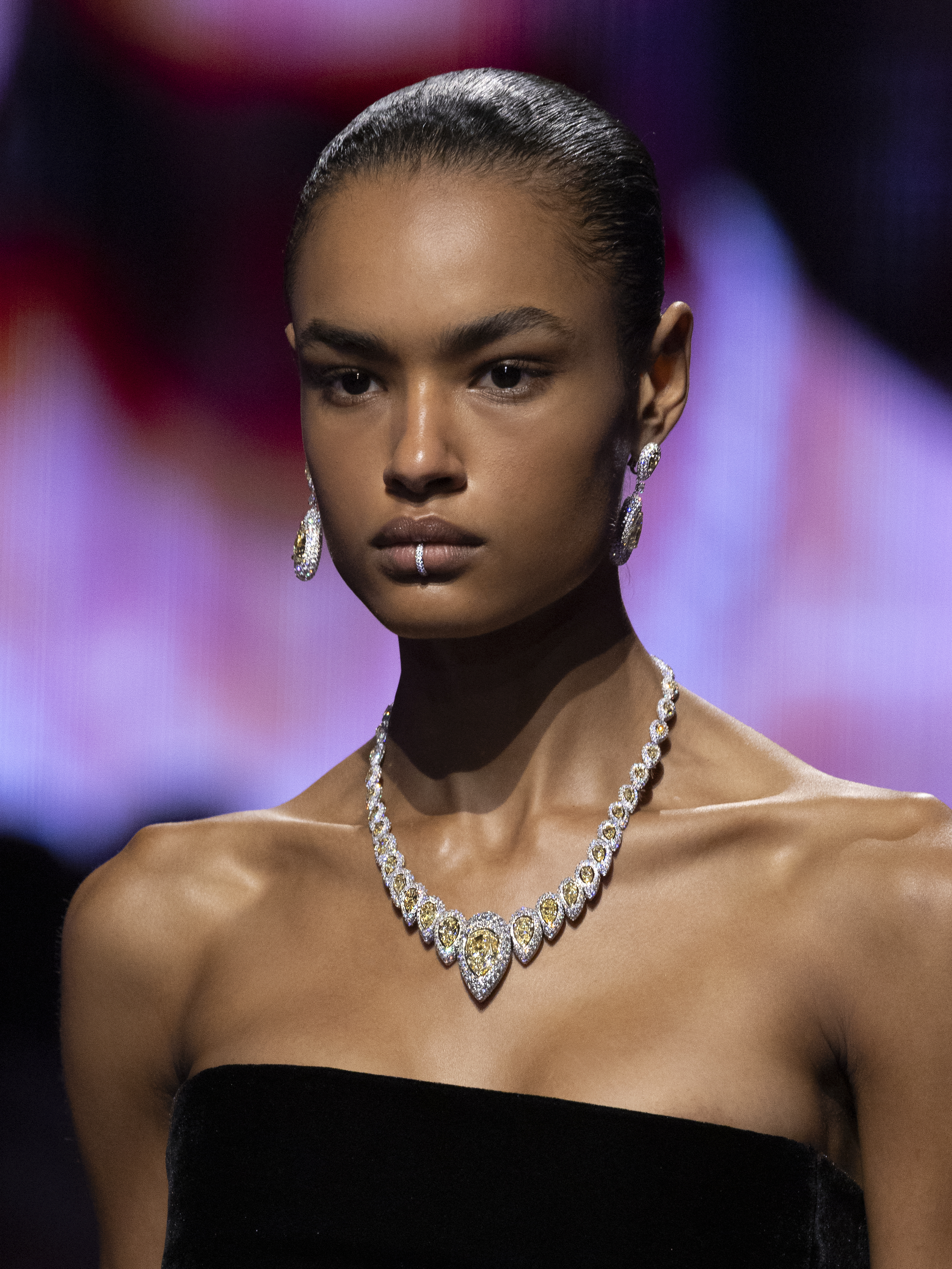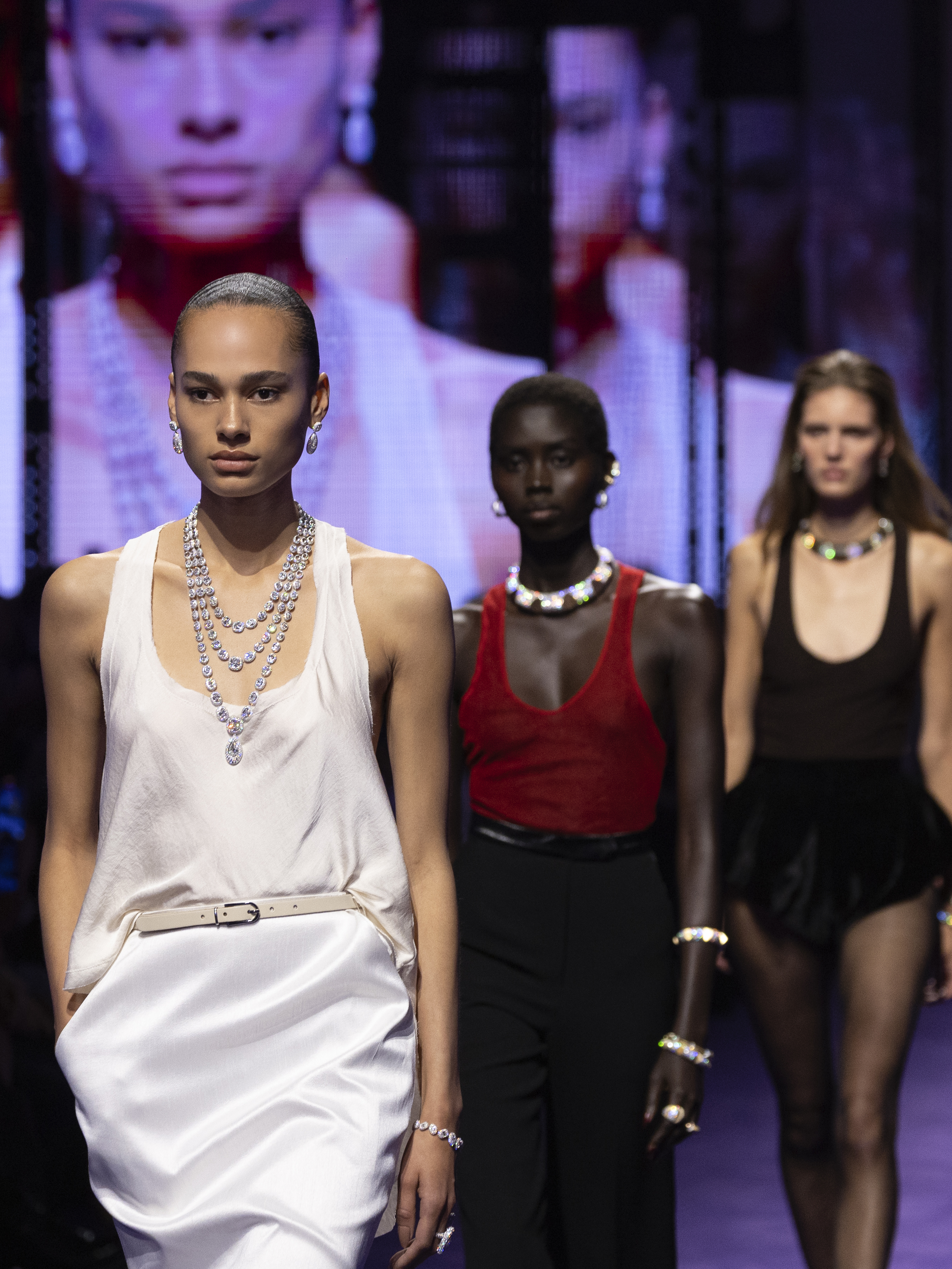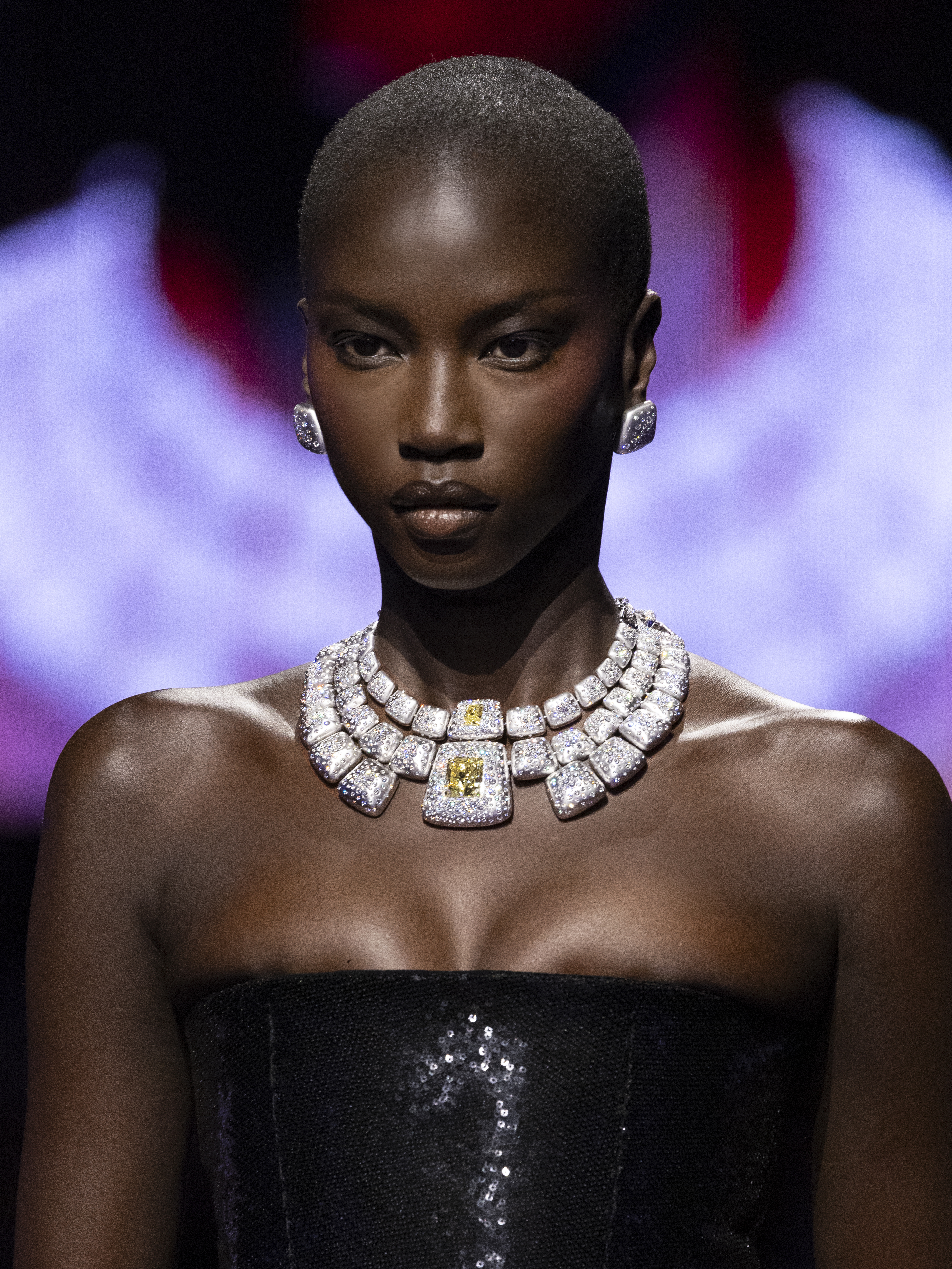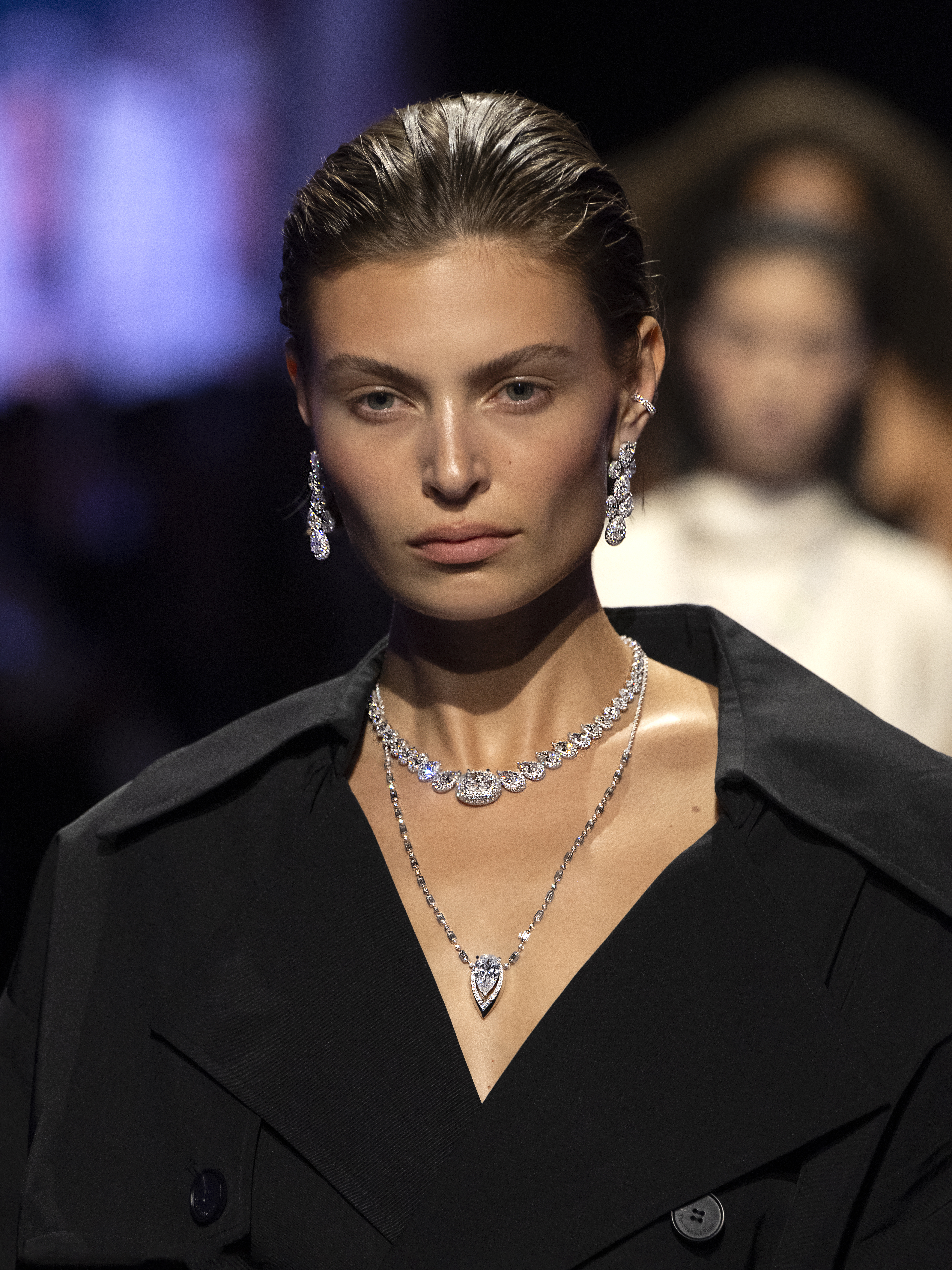 Messika célèbre 20 ans de création avec un défilé Haute Joaillerie, dévoilant la collection “Terres d’Instinct”. À l’occasion de cet anniversaire, Valérie Messika a puisé son inspiration dans un voyage en Namibie. De cette terre brute et majestueuse est née une collection où incisions acérées, zébrures stylisées et motifs organiques composent une écriture libre, entre paysage sans limites et force animale.