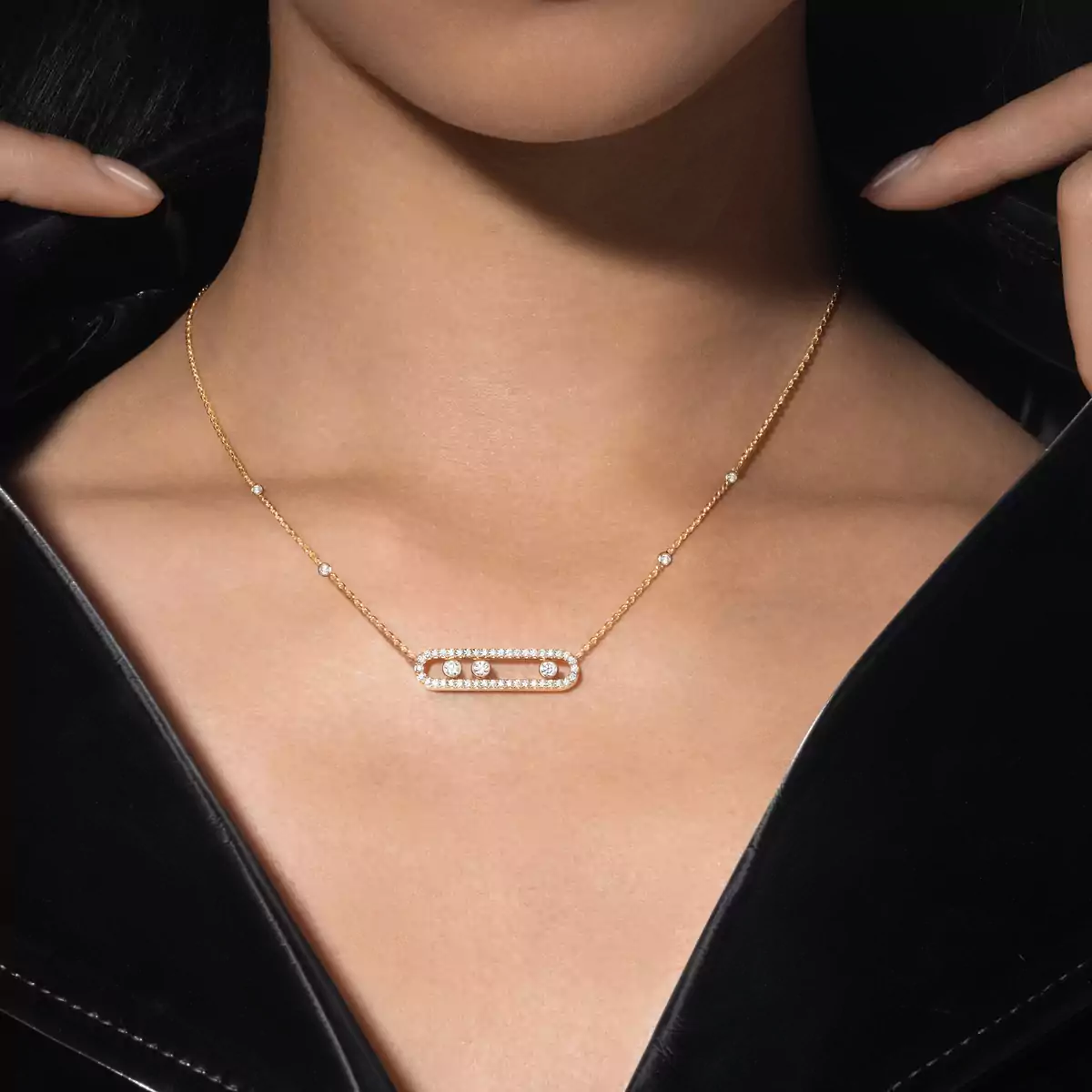 Yellow Gold Diamond Pavé Necklace Move | Messika 03994-YG